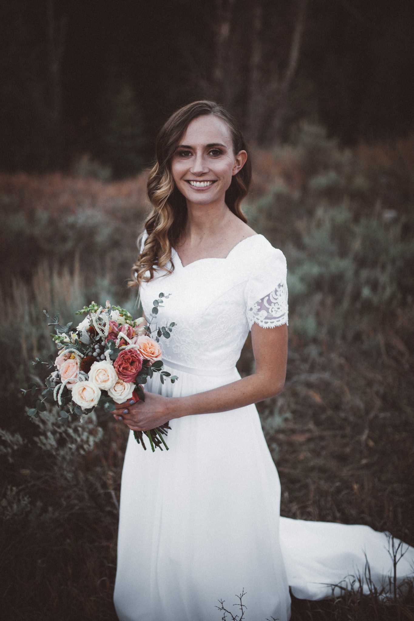 A natural waisted gown with a chiffon skirt and lace bodice. Light and graceful with beautiful lace-to-chiffon transition.