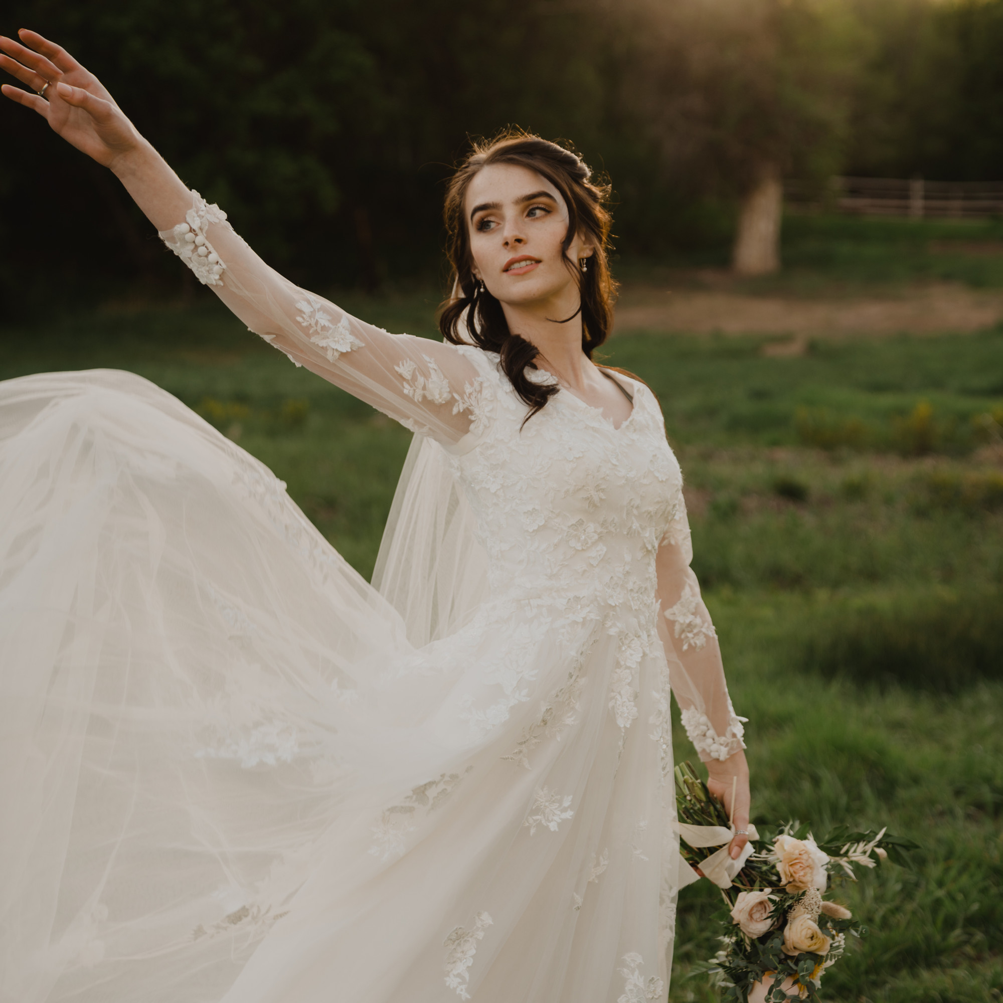 This A-line gown has unique 3D lace throughout. A dreamy design that creates a romantic and ethereal bridal look.