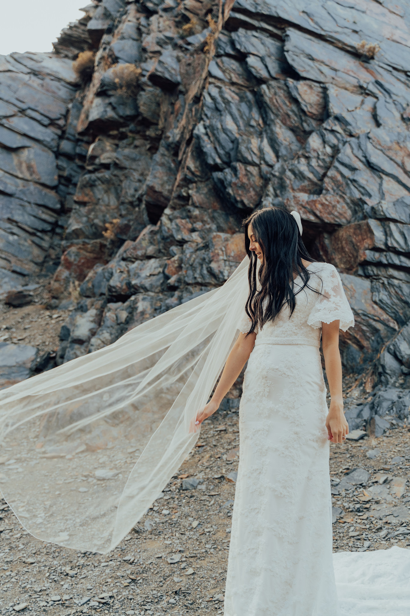 A fitted gown with fully beaded lace and a V-neck. Luxurious beading creates a show-stopping bridal moment.