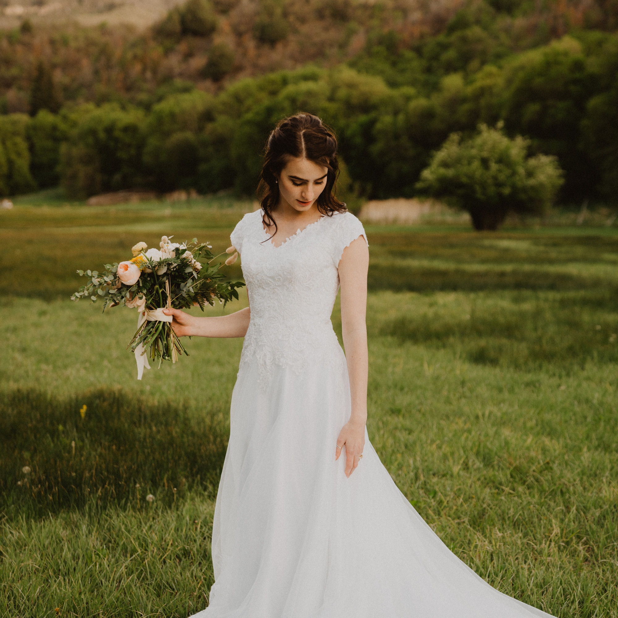 Meet Nora, a breathtaking soft tulle A-line gown with a V neck, designed to make your special day unforgettable. This gown embodies grace and elegance, perfect for brides seeking timeless beauty.